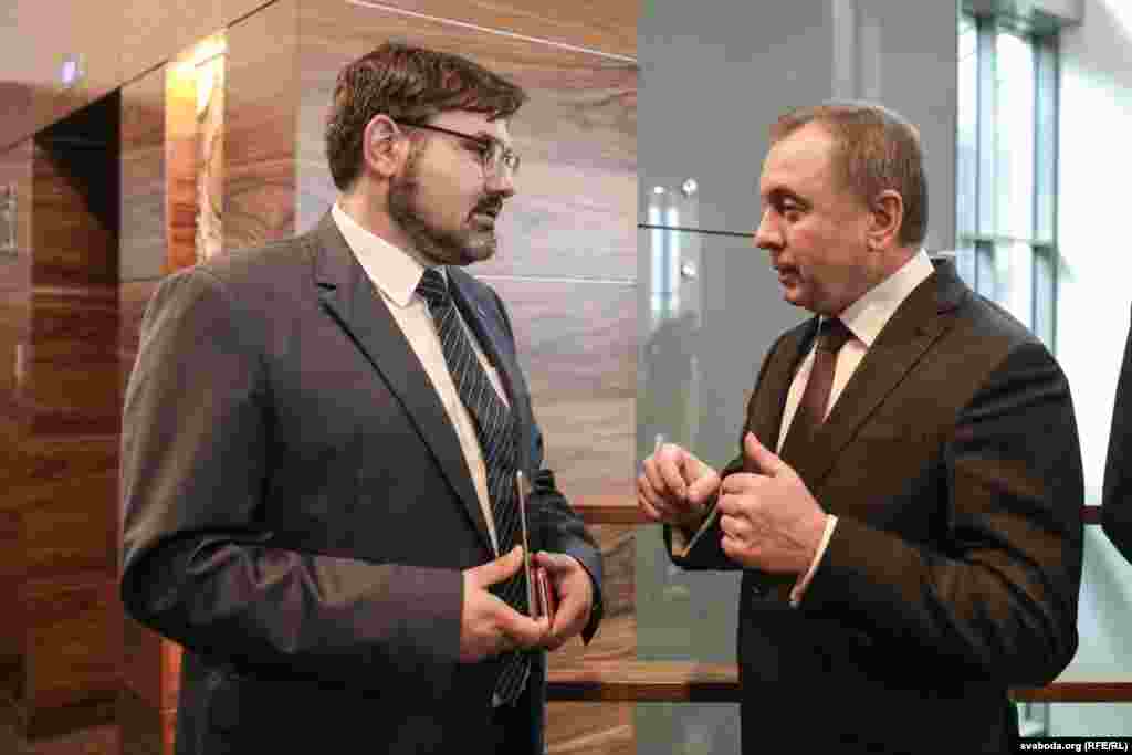Міністар замежных спраў Беларусі Ўладзімер Макей (зьлева) і кіраўнік экспэртнай ініцыятывы «Менскі дыялёг» Яўген Прэйгерман