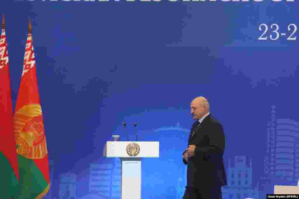 24 траўня ў межах форуму «Менскі дыялёг» кіраўнік Беларусі Аляксандар Лукашэнка выступіў з прамовай у дыскусіі «Як зрабіць Усходнюю Эўропу рэгіёнам супрацоўніцтва, а не канфрантацыі». Як гэта было вачыма фотакарэспандэнта Свабоды Ўладзя Грыдзіна.