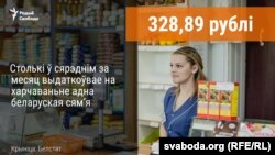 Паводле зьвестак Белстату, за месяц на харчаваньне ў адной хатняй гаспадарцы прыпадае 40,8% спажывецкіх выдаткаў. Гэта 328 рублёў 89 капеек.
