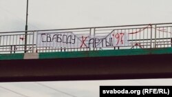 Расьцяжка зьявілася на пешаходным мосьце цераз МКАД у раёне Сухарава.