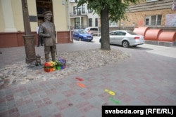 Каля статуі гарадавога насупраць МУС зьявілася ЛГБТ-клюмба