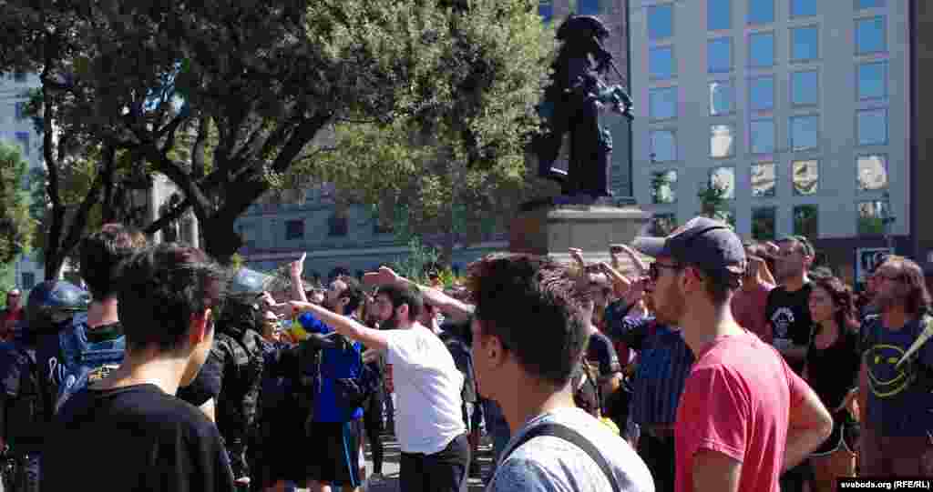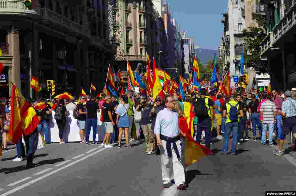 У сваю чаргу прыхільнікі незалежнасьці зранку 29 верасьня сабраліся на контрадэманстрацыю. Каталёнская паліцыя Mossos паставіла кардоны і ахоўвала шэсьце прыхільнікаў нацыянальнай паліцыі, каб не дапусьціць сутыкненьняў. У мясцовых паліцыянтаў кідалі ёмістасьці з фарбай, адбыліся бойкі паміж прыхільнікамі незалежнасьці і паліцыянтамі.