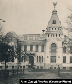 На старым фатаздымку — будынак былога сялянскага і дваранскага зямельнага банкаў. У 1918 годзе бальшавікі разьмясьцілі тут фінансавы аддзел губвыканкаму. На тагачасным фота каля будынка відаць вайскоўцы.