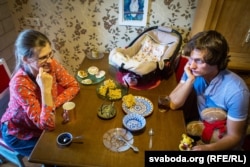 Нягледзячы на клопаты зь немаўлём, гаспадары без ваганьняў запрашаюць дахаты на пірог.