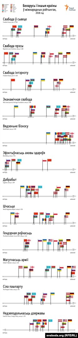 Свабода сабрала ў адну карцінку 12 міжнародных рэйтынгаў, апублікаваных сёлета: