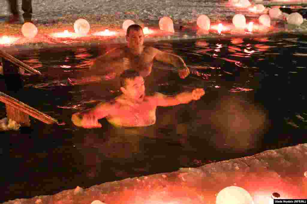Глядзіце фотарэпартаж Радыё Свабода з начыных купаняняў на Вадохрышча з возера ў вёсцы Лысая гара і з Камсамольскага возера ў Менску.