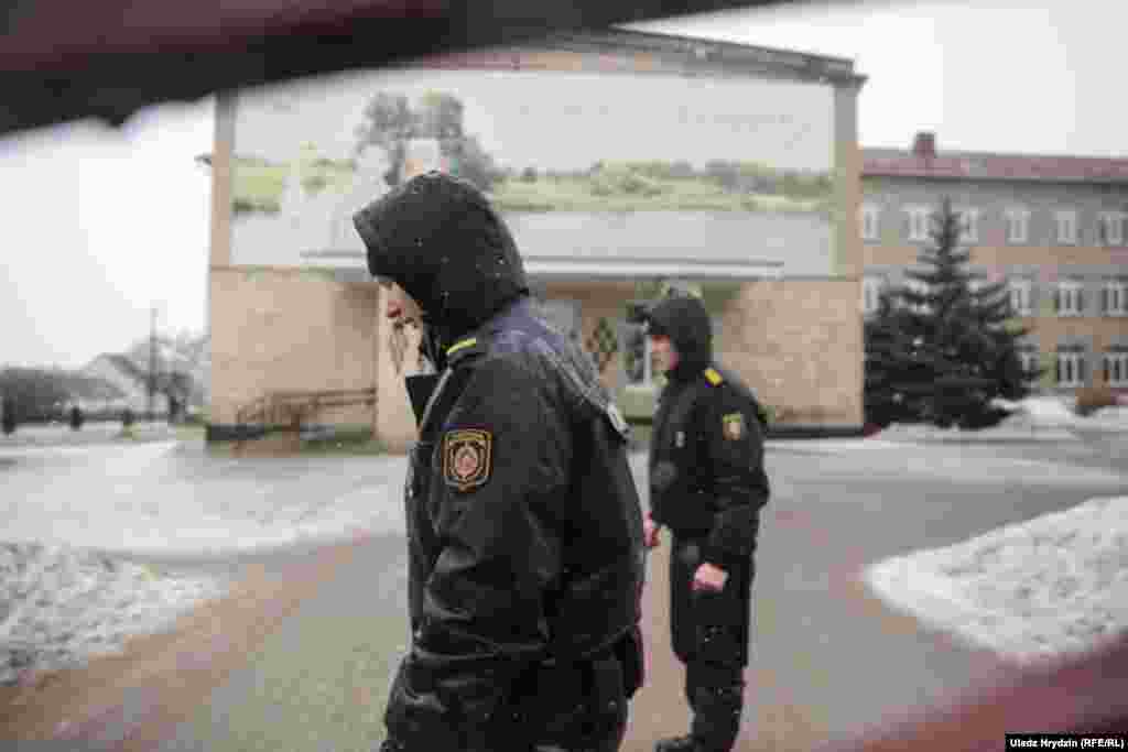 Міліцыянты каля школы № 2 у Стоўпцах пасьля двайнога забойства