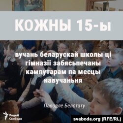 У беларускіх школах і гімназіях 64,7 тысячы пэрсанальных кампутараў. Гэта 66 кампутараў на тысячу вучняў. У Расеі на тысячу вучняў — 139 кампутараў.