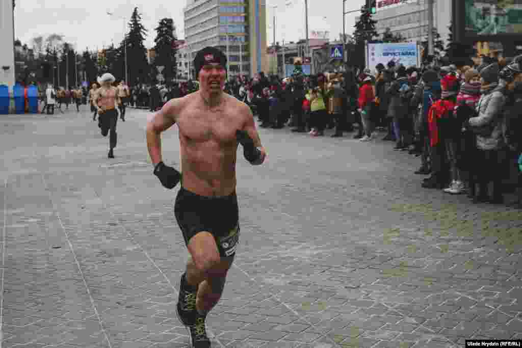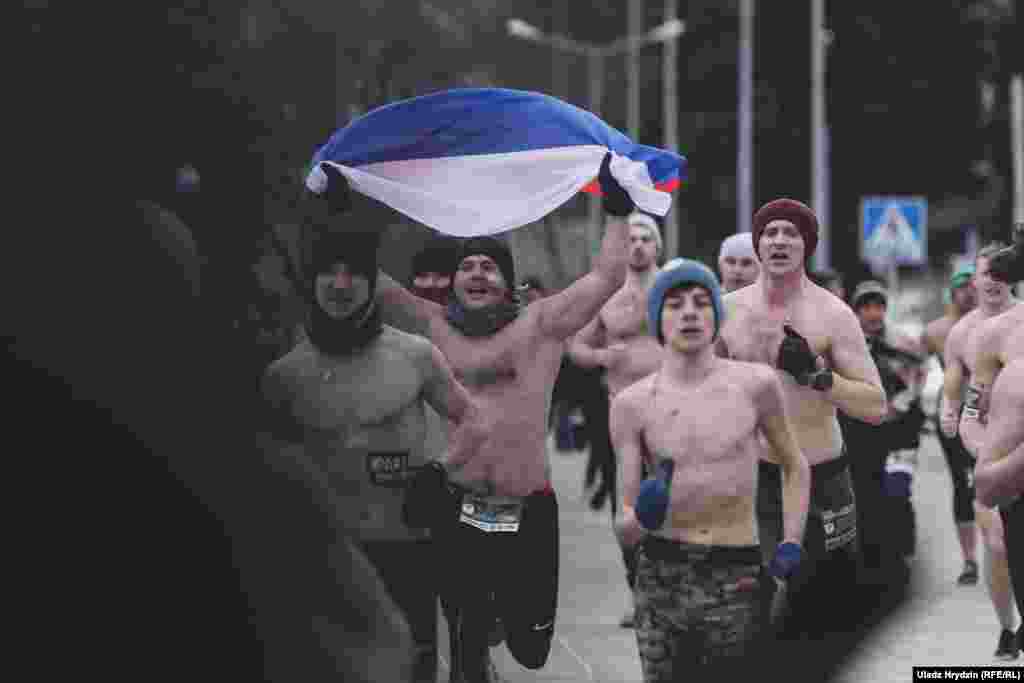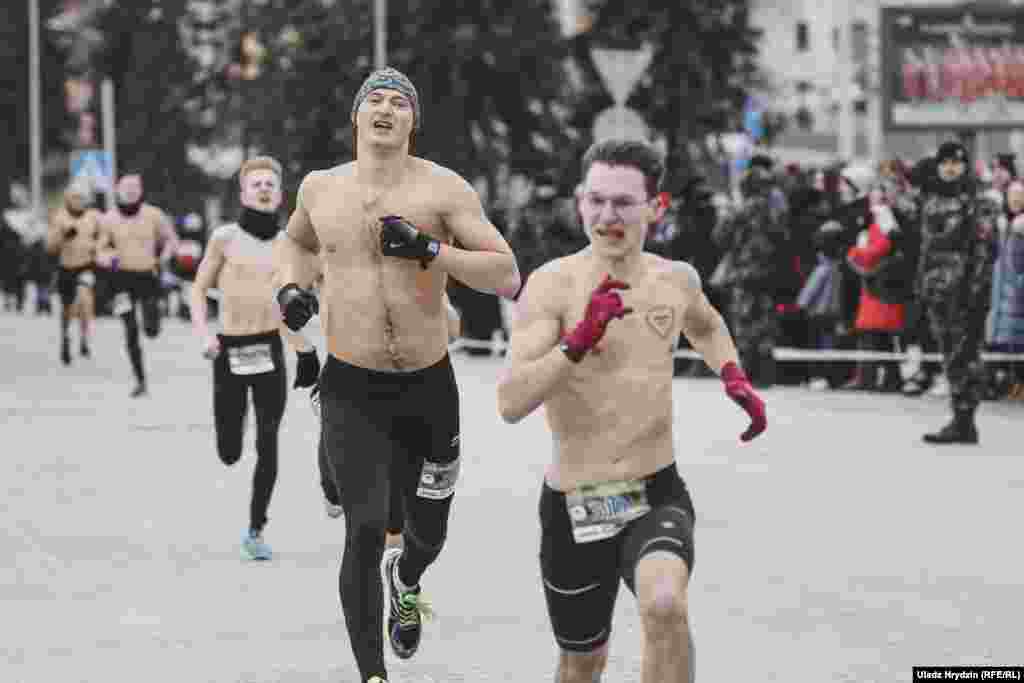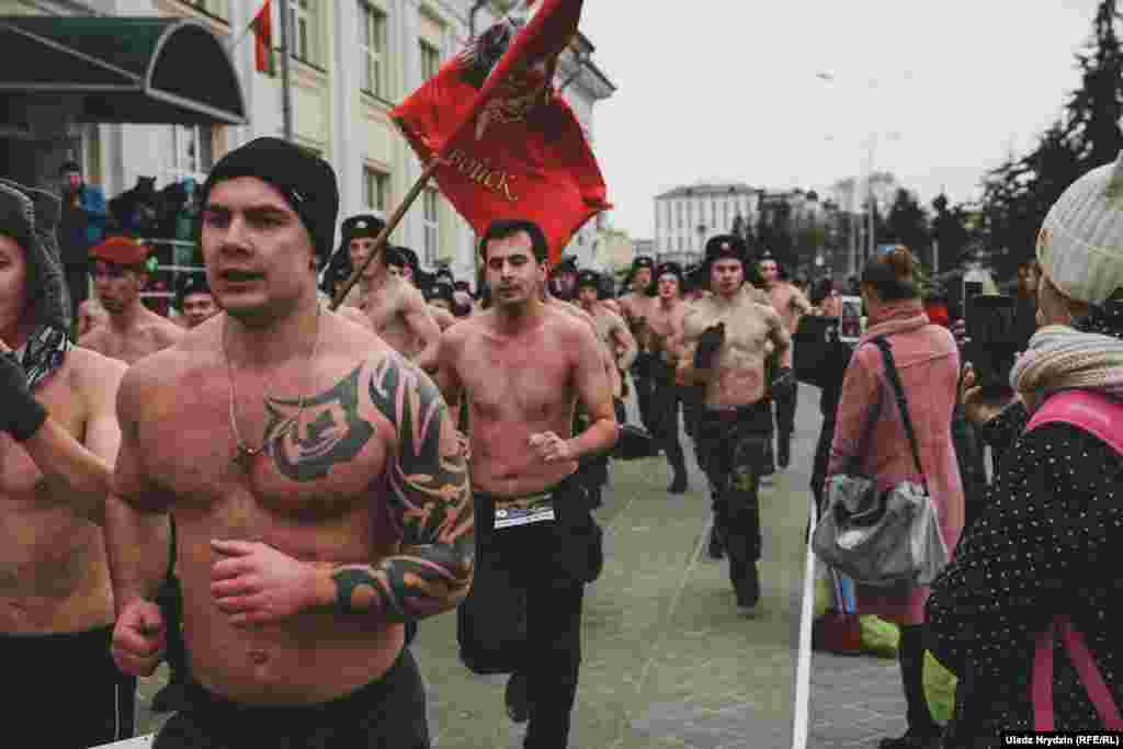 У «мужчынскім забегу» 23 лютага беглі зь бел-чырвона-белым і з расейскім сьцягамі