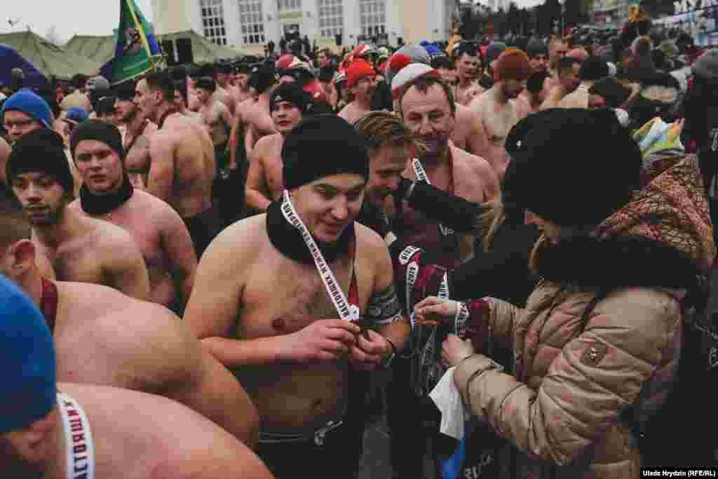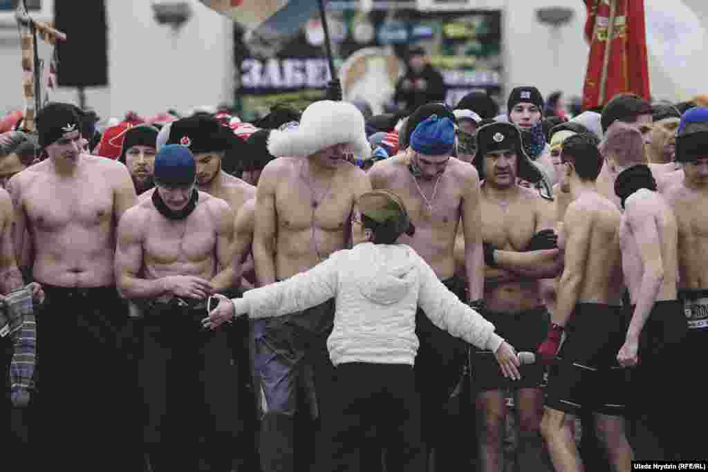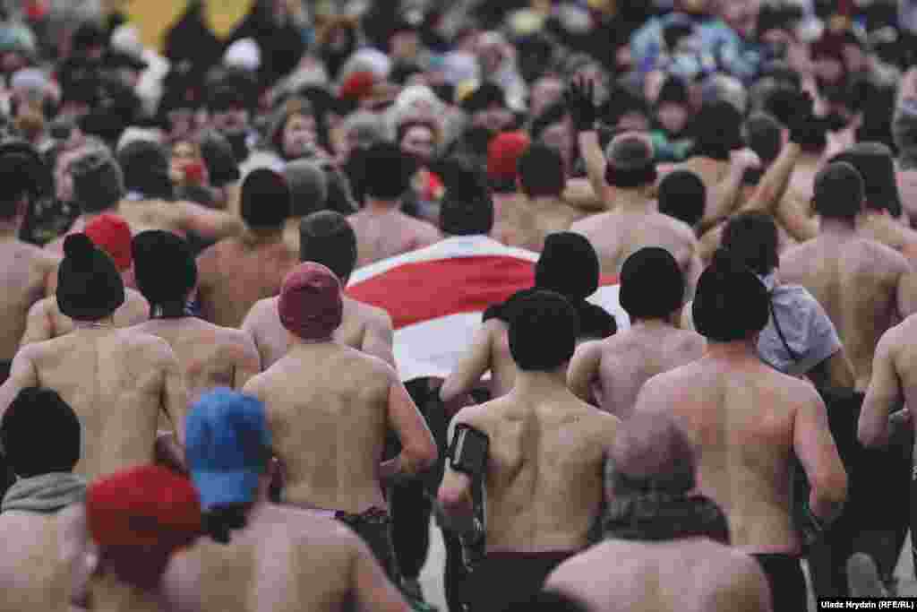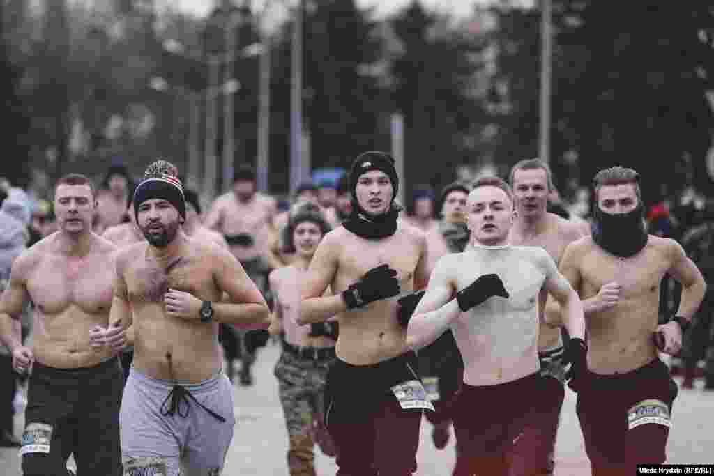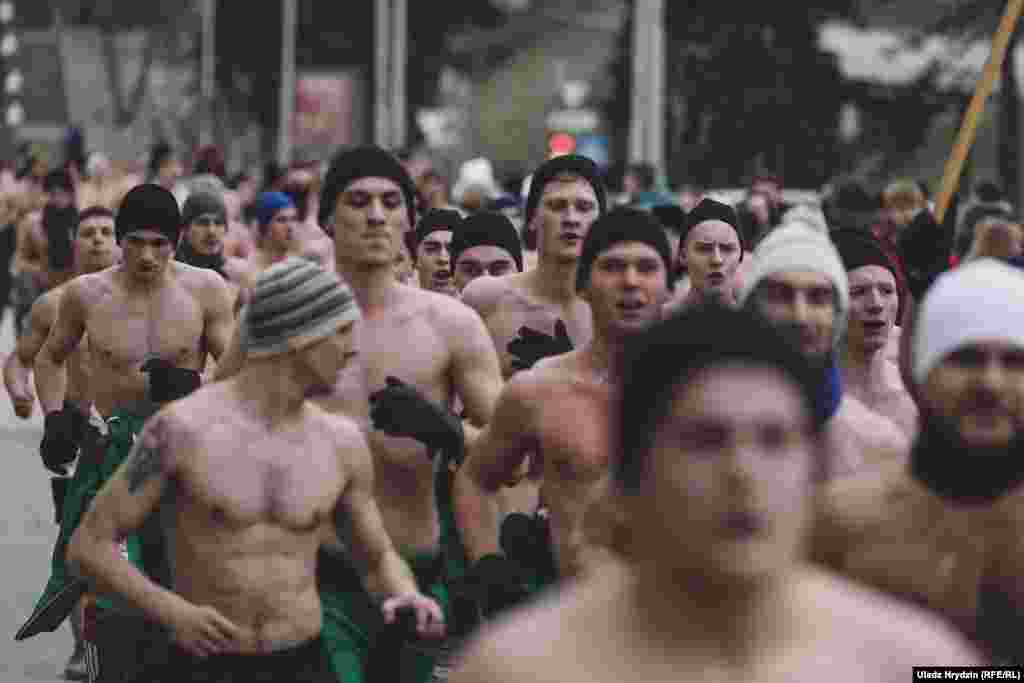 У «мужчынскім забегу» 23 лютага беглі зь бел-чырвона-белым і з расейскім сьцягамі