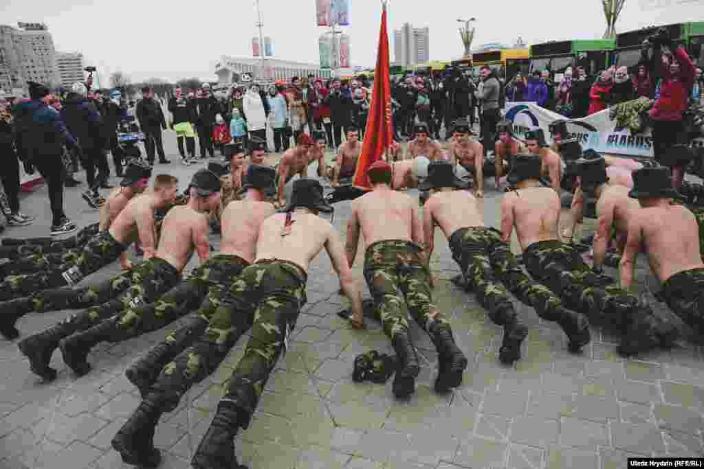 У Менску каля трох тысяч мужчын з голым торсам узялі ўдзел у мужчынскім забегу з нагоды афіцыйнага сьвята 23 лютага. Арганізатары назвалі гэта «Забег настоящих мужчин». Паводле правілаў бегчы маглі толькі мужчыны. Жанчыны працавалі валянтэрамі.