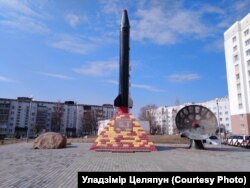 На жыхара Мазыра склалі адміністрацыйны пратакол за надпіс «Незалежнасьцю не гандлюем!». Графіці было нанесенае двойчы, у студзені і лютым, на стэлу, усталяваную ў гонар ракетнай дывізіі, якая ў савецкія часы месьцілася ў Мазыры. Памятны знак аформлены ў колерах расейскага сьцягу, «аздоблены» георгіеўскай стужкай. У райцэнтры ўсталяваны два памятныя знакі ў гонар ракетчыкаў.