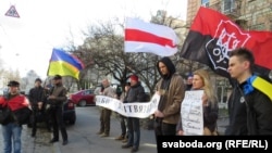 Украінскія і беларускія актывісты ды добраахвотнікі зладзілі каля амбасады Беларусі ў Кіеве акцыю салідарнасьці з затрыманымі у Менску ў Дзень Волі.