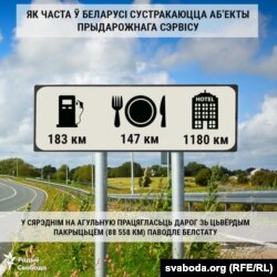 Аляксандар Лукашэнка 24 траўня выказаўся пра стан беларускім дарог. Свабода паглядзела, як часта на дарогах можна сустрэць запраўку, гасьцініцу ці кавярню.