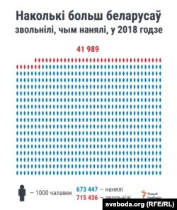 Апошні раз прадпрыемствы, якія працуюць у Беларусі, часьцей працаўладкоўвалі, чым звальнялі ў верасьні 2018 году. Тады лічба працаўладкаваных перавысіла колькасьць звольненых на 5 595 чалавек.
