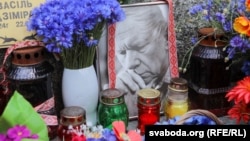 Сябры, калегі і чытачы Васіля Быкава ўсклалі кветкі на ягоную магілу на Ўсходніх могілках Менску. Сёньня споўнілася 95 гадоў з дня нараджэньня народнага пісьменьніка.