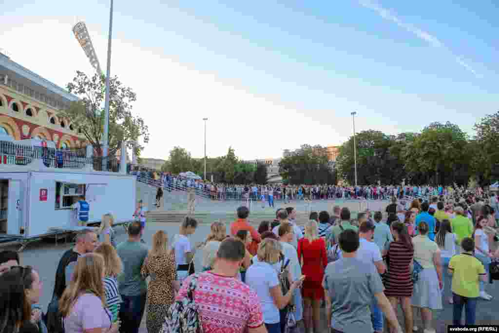 На рэпэтыцыі адкрыцьця Эўрапейскіх гульняў у Менску утварыліся вялікія чэргі з жадаючых трапіць на стадыён «Дынама». Праз галоўны ўваход амаль нікога не пускалі. Ён быў аддадзены VIP-пэрсонам.