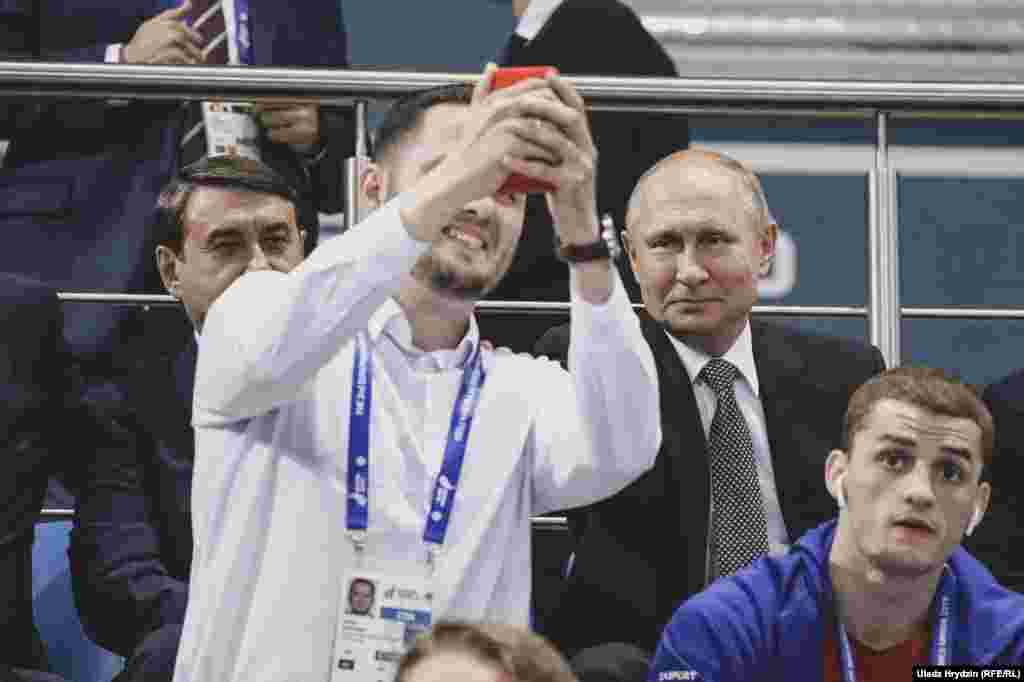 Прэзыдэнт Расеі Ўладзімір Пуцін прыляцеў на закрыцьцё Эўрапейскіх гульняў у Менску і наведаў фінальны бой па боксе ў вагавай катэгорыі да 91 кг паміж беларусам Уладзіславам Сьмяглікавым і расейцам Мусьлімам Гаджымагамедавым.