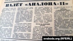 У ліпені 1969 году газэта «Звязда», якую выдаваў ЦК Камуністычнай партыі Беларусі, пра палёт амэрыканскага карабля «Апалён 11» на Месяц напісала двойчы. Першы матэрыял выйшаў у нумары за 21 ліпеня, ужо пасьля высадкі. Матэрыялу прысьвяцілі перадапошнюю старонку нумару. Там згадалі пра сам палёт на месяц, высадку і вяртаньне касманаўтаў Армстранга і Олдрына ў кабіну касьмічнага карабля.