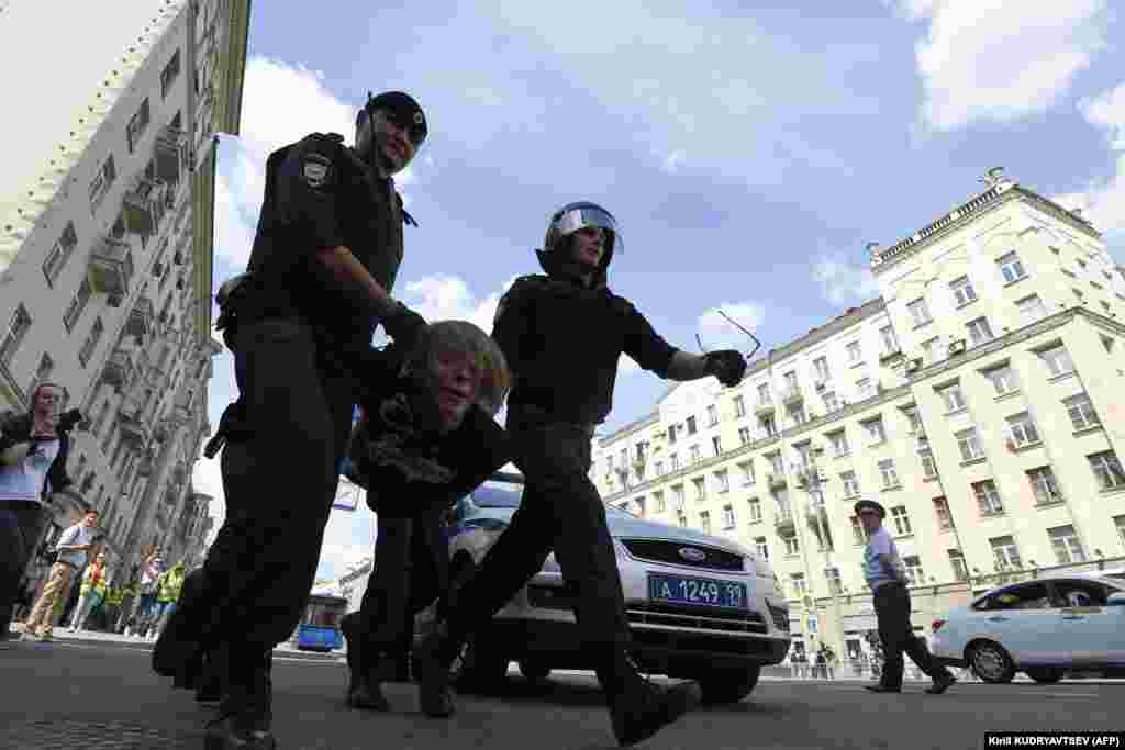 Брутальныя затрыманьні на акцыі пратэсту ў Маскве. Фотагалерэя