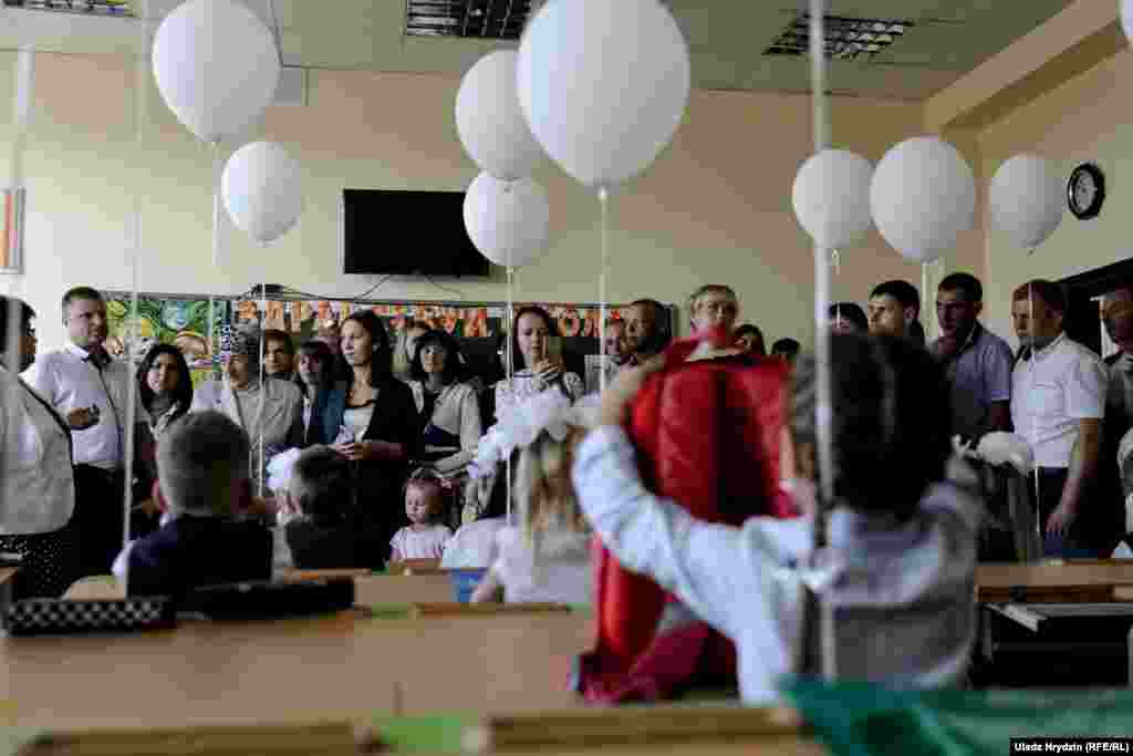 Урачыстая лінейка ў стаўпецкай школе №2, дзе ў лютым 2019 году адбылося двайное забойства, прайшла з удзелам новага дырэктара Аляксея Судніка.
