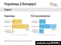 Сярод украінцаў дзяцей і падлеткаў было ў 4 разы менш, чым сярод усяго насельніцтва, моладзі — удвая менш, калі ва ўсім насельніцтве асобаў, старэйшых за працаздольны ўзрост, было менш за чвэрць, сярод украінцаў — больш за траціну.