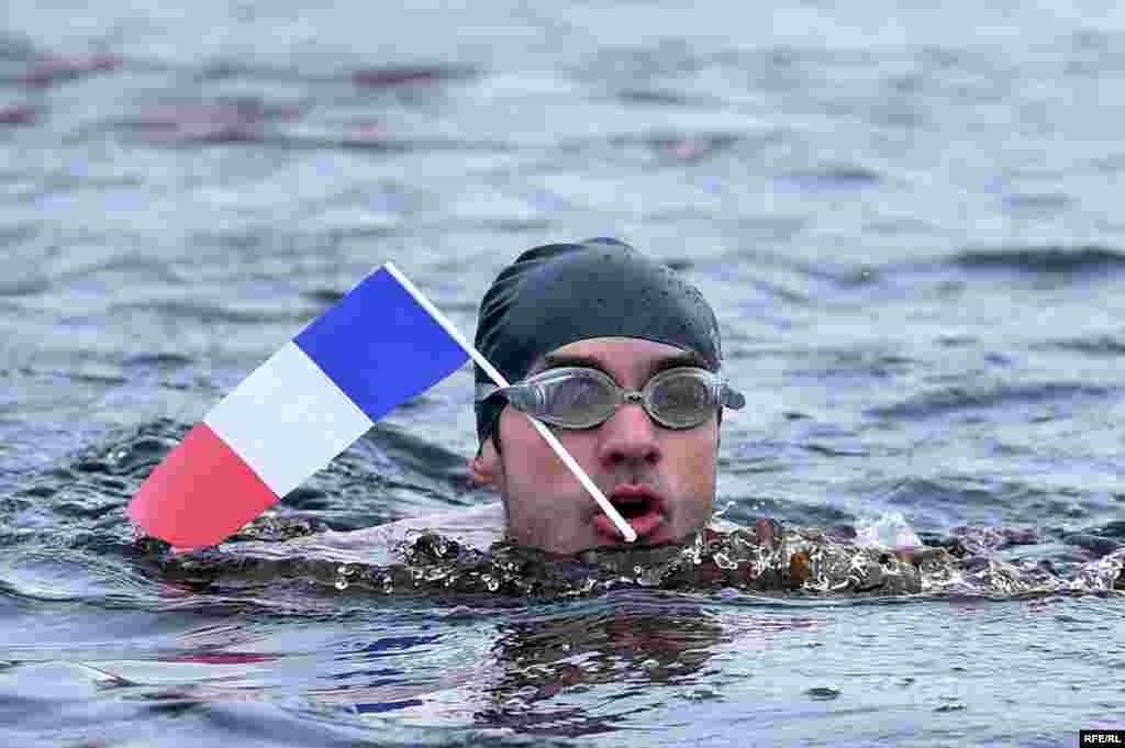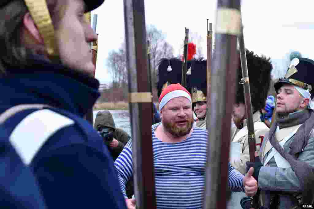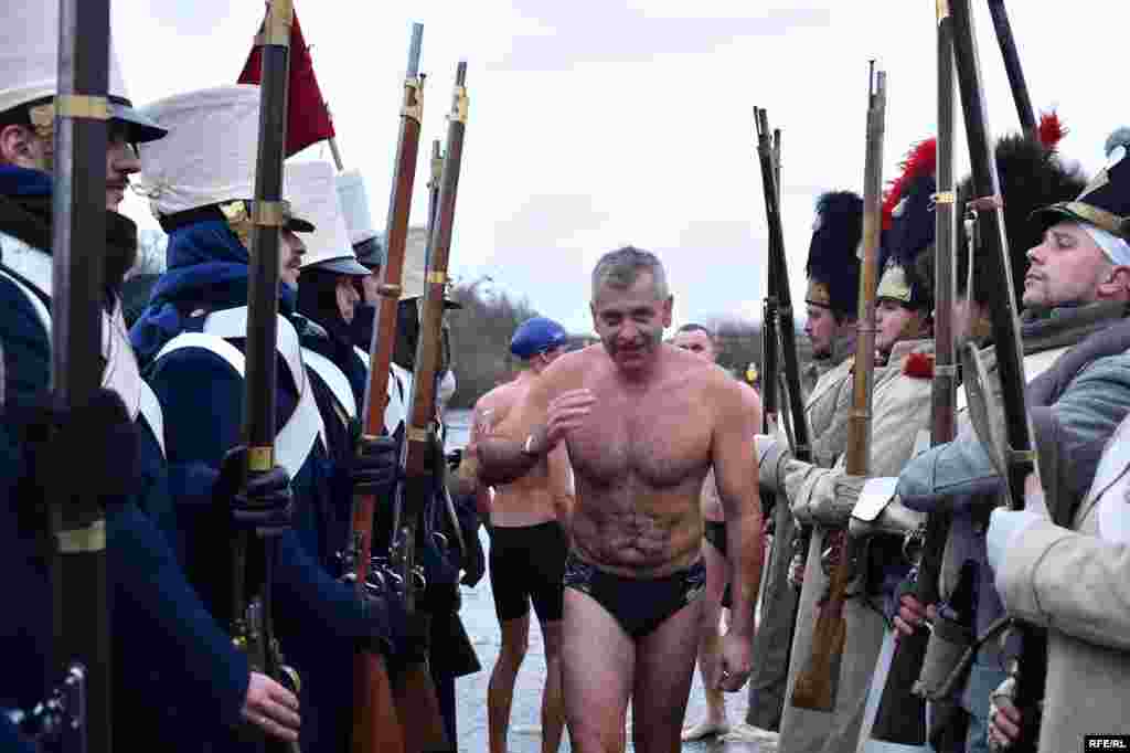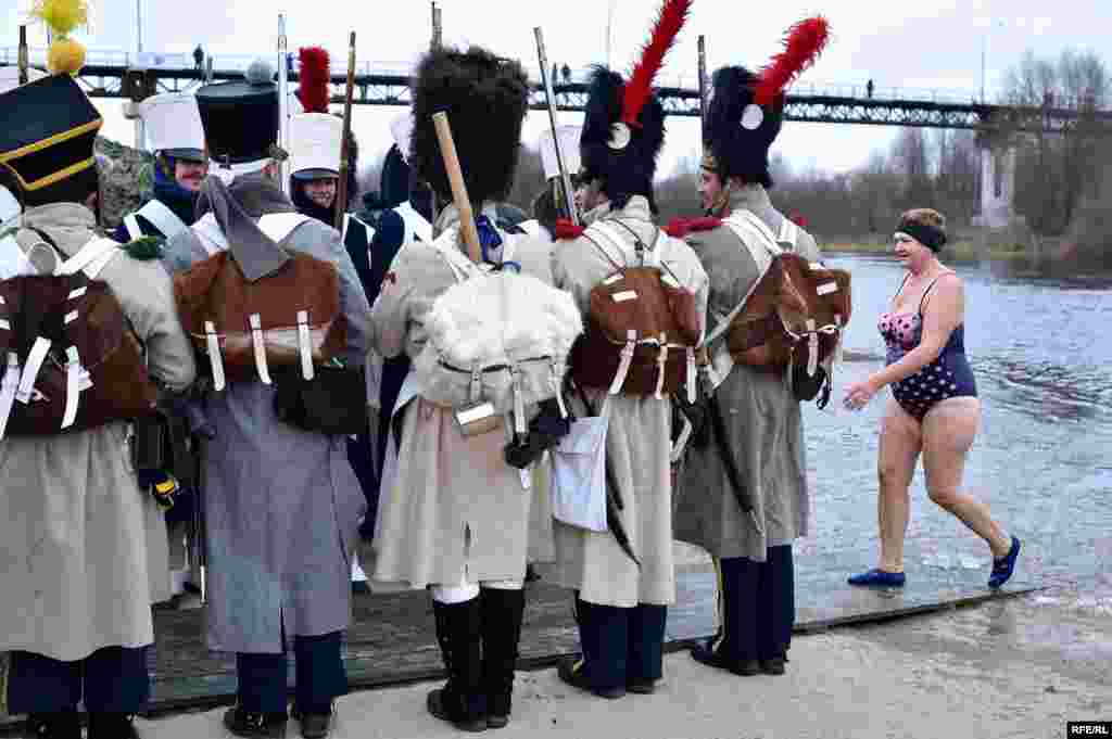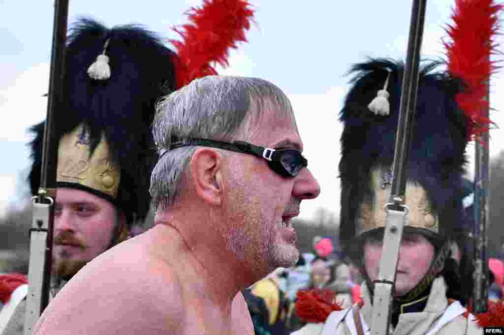 Сёньня Амбасада Францыі ў Беларусі правяла штогадовыя мерапрыемствы з нагоды гадавіны пераправы Напалеона ў лістападзе 1812 году праз раку Бярэзіна. 85 чалавек удзельнічала ў заплыве праз раку. Фота Сяргея Гапона.