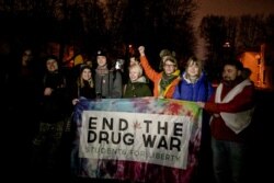 Каля камісарыяту Стас Шашок сьпявае «In my mind», кампанія робіць на памяць фота са сьцягам «End the drugs war». Міхась Варанцоў закруціся ў бел-чырвона-белы сьцяг.
