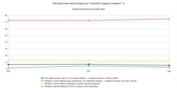 Як бачым, у такой фармулёўцы колькасьць прыхільнікаў саюзу з Расеяй (нейкага саюзу, хоць якога саюзу) зьніжаецца на дзясяткі адсоткавых пунктаў, ледзь не напалову, у параўнаньні з адказамі на пытаньне з графіку 1.