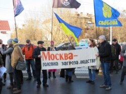 У Кіеве беларускія і ўкраінскія актывісты пікетавалі амбасаду Расеі, пратэстуючы супраць паглыбленьня беларуска-расейскай інтэграцыі, якая пагражае незалежнасьці Беларусі.