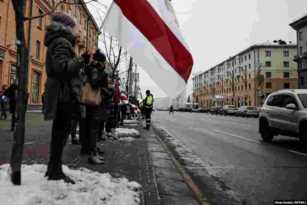 Акцыю меркавалі «расьцягнуць» ад Галоўпаштамта да Кастрычніцкай плошчы, але ўдзельнікаў хапіла на два кварталы