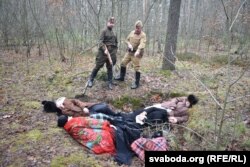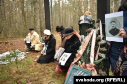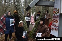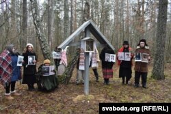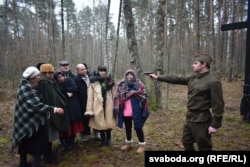Жыхары Гомля зладзілі ў «Лесе сьмерці» рэканструкцыю расстрэлаў ахвяраў рэпрэсіяў. ФОТА