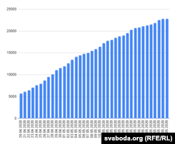 Афіцыйна прызнаныя 38 956 выпадкаў COVID-19 у Беларусі — 22-е месца ў сьвеце паводле распаўсюду новага каранавірусу. Беларусь ужо абагнала Швэцыю, Партугалію, Швайцарыю, Польшчу, Украіну і многія іншыя эўрапейскія краіны.