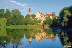 Палац паводле праекту італьянскага архітэктара Джузэпэ дэ Сака па-мастацку ўпісаны ва ўзгорыстую мясцовасьць у ваколіцах Сьвяцку.