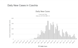 Вось як адпаведныя графікі выглядаюць для тых краінаў, дзе эпідэмія відавочна ідзе на спад (скрыншоты з сайту worldometers.info)