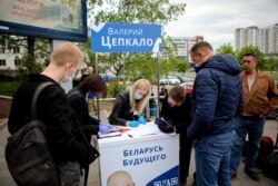 Жыхары Гомля 28 траўня выстраіліся ў чаргу, каб пакінуць подпіс за Сьвятлану Ціханоўскую, якая вылучаецца кандыдатам на прэзыдэнта.