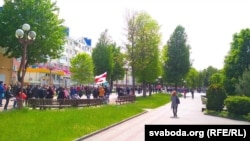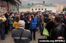 Людзей заклікалі прыйсьці, каб падтрымаць Сяргея Ціханоўскага, якога затрымалі 29 траўня ў Горадні ў выніку штурханіны, якую многія называюць сплянаванай уладамі правакацыяй.