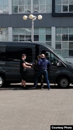 31 траўня раніцай на вуліцы Маякоўскага ў Менску людзі ў цывільным на мікрааўтобусе заблякавалі машыну жонкі Статкевіча Марыны Адамовіч.