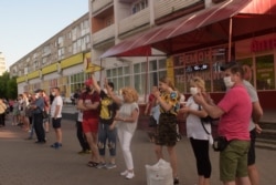 У раёне Грушаўка ў Менску людзі таксама выйшлі падтрымаць кандыдатаў. Шчыльны ланцуг выстраіўся ад мэтро Грушаўка да ДАІ — гэта пару кварталаў.