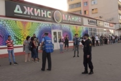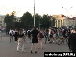 Нехта стаіць, але збольшага людзі прагульваюцца па гэтым пэрымэтры. Гэта нагадвае «масавыя гуляньні» падчас ранейшых маўклівых акцый пратэсту.