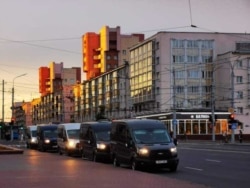 МЕНСК: Аўтобусы з танаваным шклом і зачыненымі форткамі едуць у бок Дому ўраду па праспэкце Незалежнасьці, паведаміў Свабодзе відавочца.