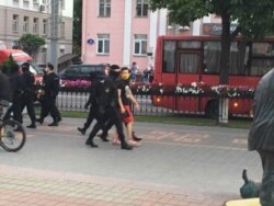 «Я была на плошчы Перамогі, там пад’ехаў аўтазак і пачалі без разбору затрымліваць людзей», — расказала Свабоде жанчына, што прыйшла зь Перамогі да ГУМа.