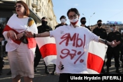МЕНСК: У менскім мікрараёне Грушаўка пасьля жорсткага разгону АМАПу людзі зноў людзі выстраіліся ў «ланцуг салідарнасьці».
