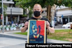 На пікеце выступіў папулярны блогер Nexta — Сьцяпан Пуціла.
