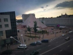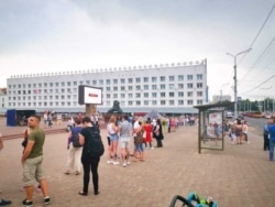 Мікалай Казлоў тлумачыць людзям праз мэгафон, што міліцыя забараніла зьбірацца пасьля 19 гадзінаў і прапануе ўсім разысьціся. Ізноў гучаць аплядысмэнты, якімі ў гэтыя дні выражаюцца самыя розныя эмоцыі — ад падтрымкі да расчараваньня і абурэньня.