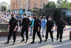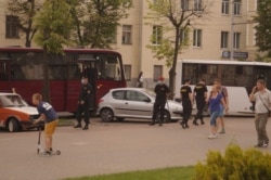 У Менску з аўтобусаў з боку філярмоніі з аўтобусаў выйшлі праваахоўнікі ў поўным абмундзіраваньні, у шаломах і з дубінкамі і пайшлі ў бок удзельнікаў акцыі.