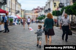Відаць было нешматлікія сем’і, што выйшлі ў горад з бел-чырвона-белымі-сьцяжкамі, маладзёнаў у сьвітшотах з Пагоняй і надпісам «Жыве Беларусь». Супрацоўнік ДАІ спыніў прынамсі аднаго таксоўца з нацыянальным сьцяжком на антэне і выпісаў яму нейкі дакумэнт.