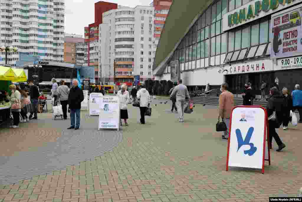 Ля Камароўскага рынку ў Менску разгорнутыя пікеты Сяргея Чэрачня, Валера Цапкалы, Віктара Бабарыкі, Андрэя Дзьмітрыева, Вольгі Кавальковай, Мікалая Казлова і Юрася Губарэвіча.