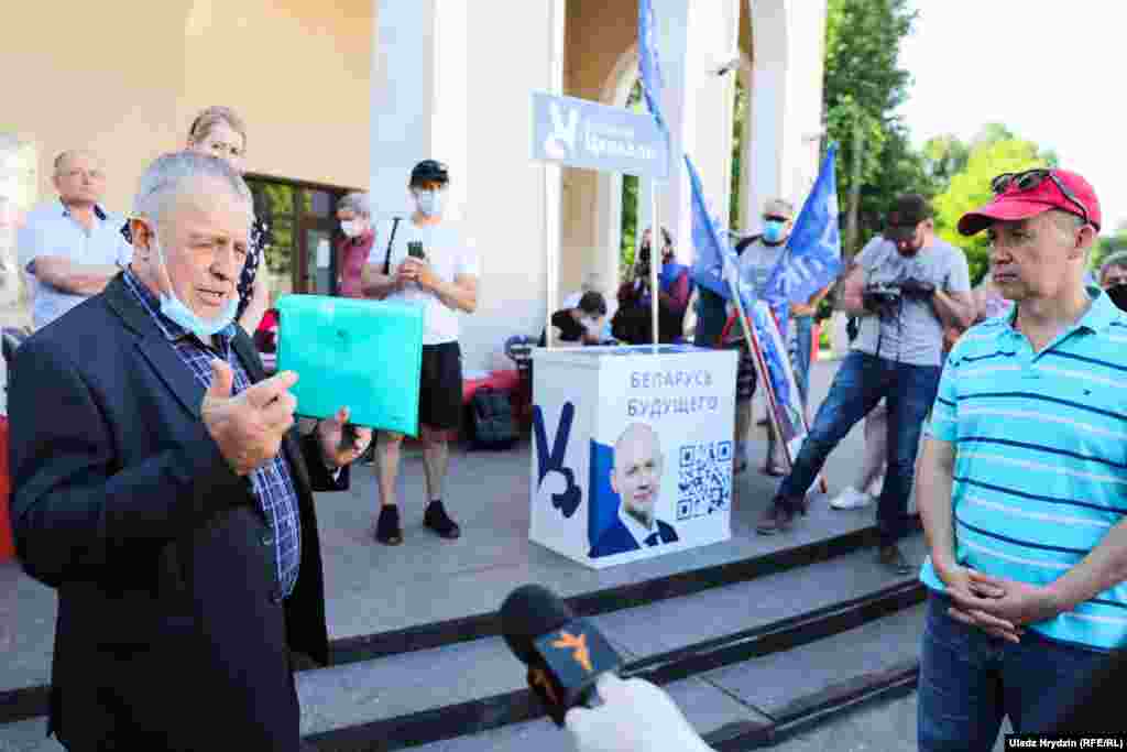 Прэтэндэнт на пасаду кандыдата ў прэзыдэнты Беларусі Валер Цапкала 17 чэрвеня наведаў выбарчы пікет у Маладэчне.
