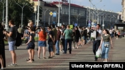 18:00. Пікет каля будынку Белдзяржфілярмоніі ў Менску. Людзі выказваюцца на мікрафон Свабоды: